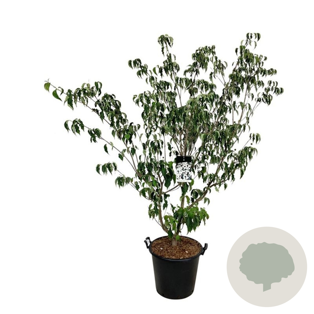| Toelichting | De Kornoelje 'Weisse Fontaine' is een prachtige struik met witte bloemen in de periode mei-juni. De plant wordt ongeveer 300 cm hoog en gedijt goed in zonnige tot halfschaduwrijke omgevingen met zandgrond, lichte klei of neutrale grond. |
