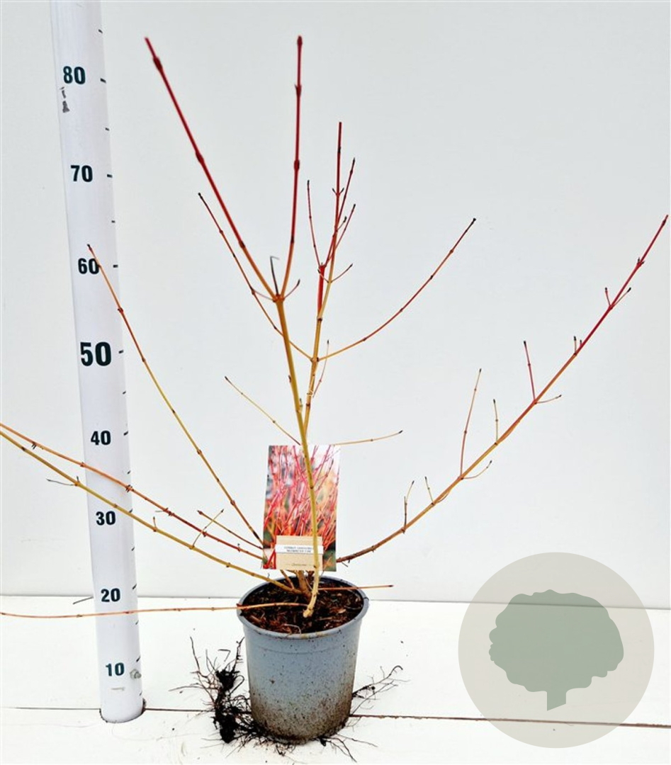 | Toelichting | De Kornoelje 'Midwinter Fire' is een prachtige struik met opvallend gekleurde bladeren in groen, oranje en rood. In mei en juni bloeit deze plant met gele bloemen. Perfect voor zonnige tot halfschaduwrijke plekken in de tuin met zandgrond, lichte klei of neutrale grond. |