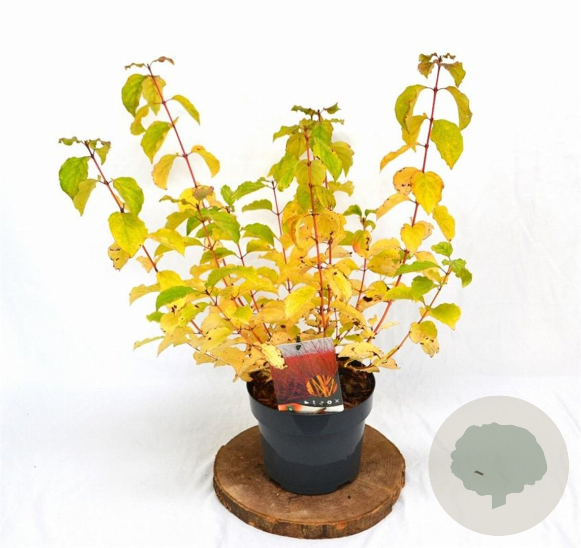 | Toelichting | De Kornoelje 'Midwinter Fire' is een prachtige struik met opvallend gekleurde bladeren in groen, oranje en rood. In mei en juni bloeit deze plant met gele bloemen. Perfect voor zonnige tot halfschaduwrijke plekken in de tuin met zandgrond, lichte klei of neutrale grond. |