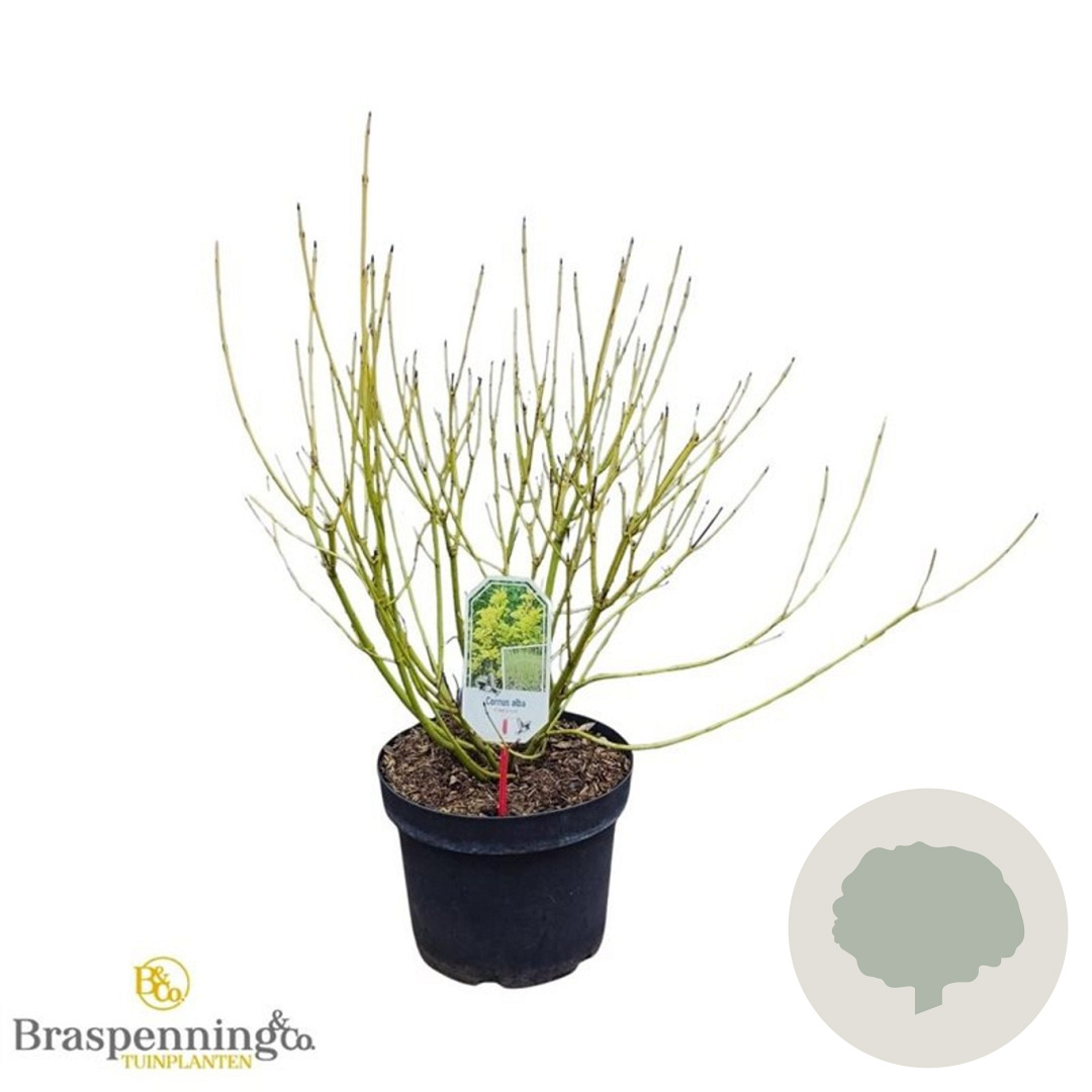 | Toelichting | De Kornoelje (Cornus sericea 'Flaviramea') is een prachtige struik met witte bloemen in mei - juni. Het groene blad en de opvallende gele takken zorgen voor een kleurrijk accent in de tuin. Geschikt voor zonnige en halfschaduwrijke plekken op verschillende grondsoorten. |