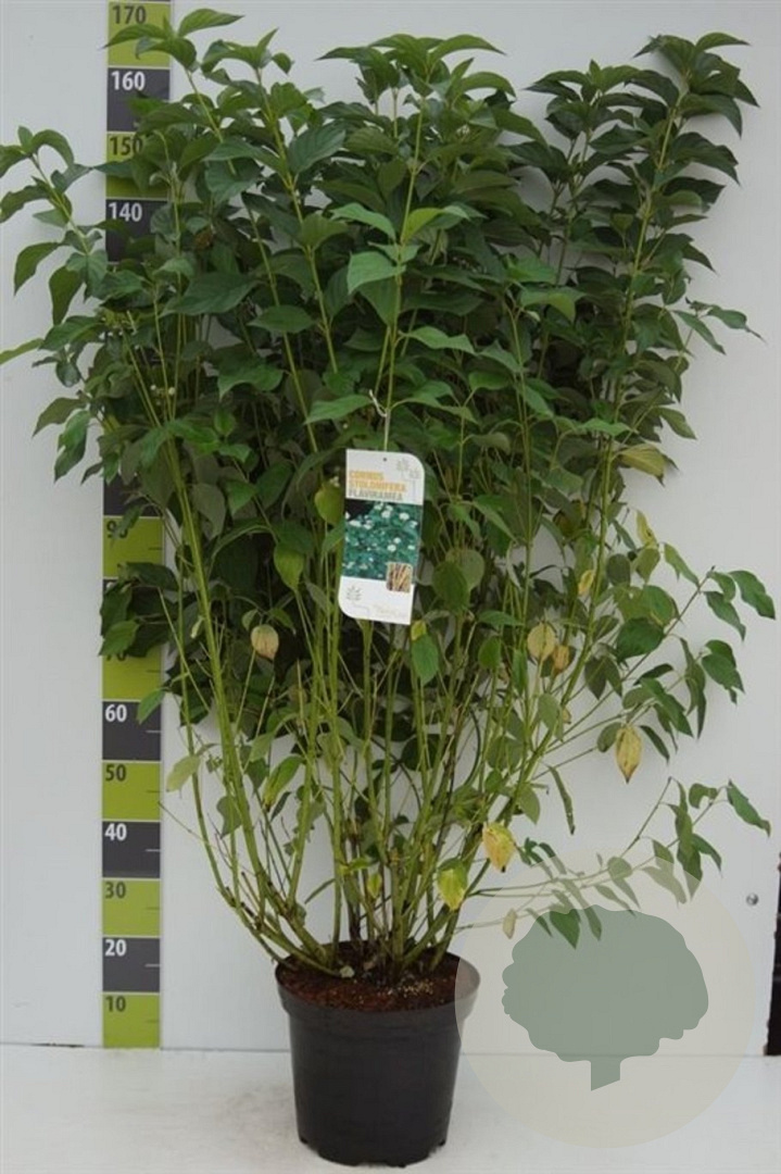 | Toelichting | De Kornoelje (Cornus sericea 'Flaviramea') is een prachtige struik met witte bloemen in mei - juni. Het groene blad en de opvallende gele takken zorgen voor een kleurrijk accent in de tuin. Geschikt voor zonnige en halfschaduwrijke plekken op verschillende grondsoorten. |