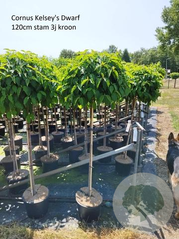 | Toelichting | De Kornoelje (Cornus sericea 'Kelseyi') is een prachtige struik met witte bloemen in mei-juni. Het groene blad en compacte formaat van 150 cm maken het een ideale aanvulling voor zonnige tot halfschaduwrijke borders op zandgrond, lichte klei of neutrale grond. |