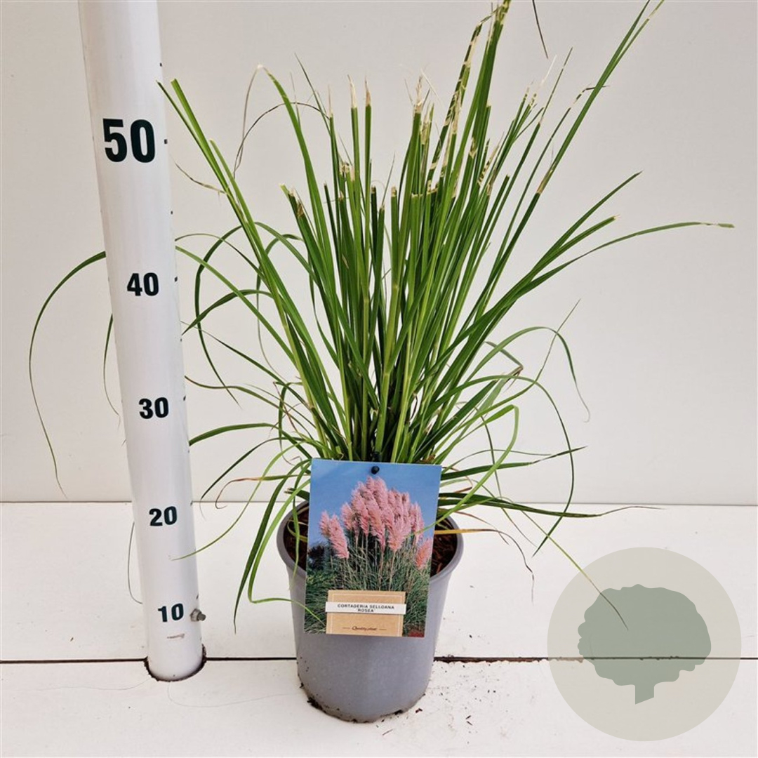 | Toelichting | Pampasgras (Cortaderia s. 'Rosea') is een prachtige siergras met grote pluimen in een zachte roze kleur. Het bloeit van augustus tot oktober en staat graag op een zonnige plek in de tuin. Perfect voor een natuurlijke uitstraling! |