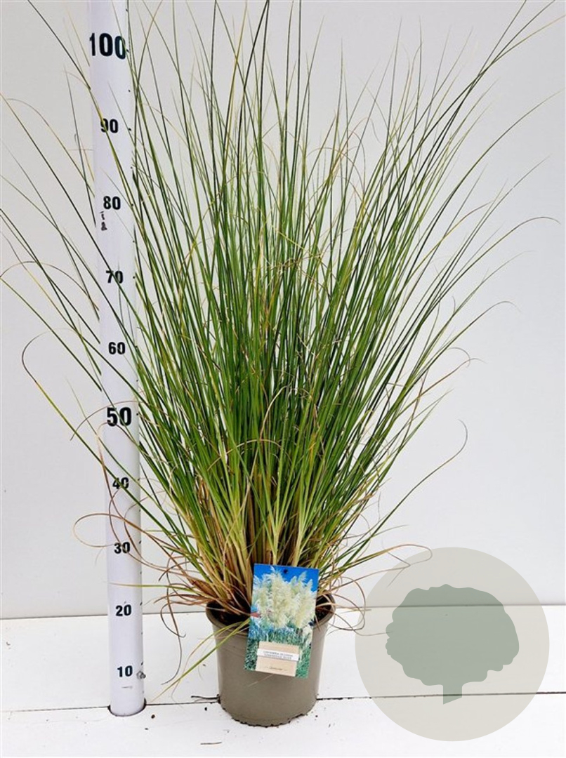 ToelichtingPampasgras (Cortaderia s. 'Sunningd. Silver') is een prachtige siergras met witte pluimen die bloeien in augustus en september. Het groene blad en de hoge volwassen hoogte van 200 cm maken het een eyecatcher in de zon op neutrale of zandgrond.