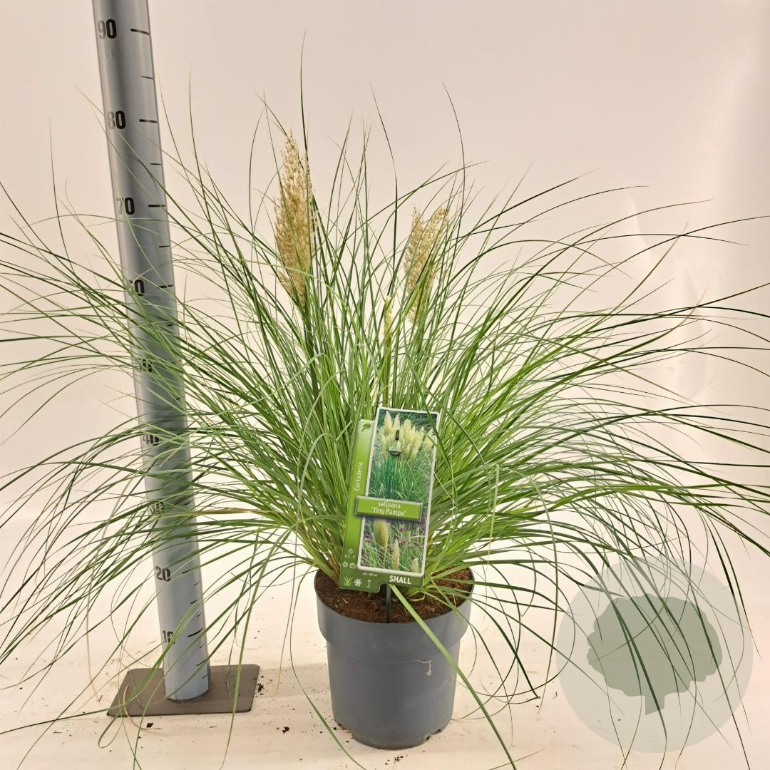 | Toelichting | Pampasgras (Cortaderia s. Tiny Pampa) is een prachtige siergras met witte pluimen die bloeien van augustus tot oktober. Het groeit het beste in de volle zon op zand- of neutrale grond. Ideaal voor een zonnige border of als eyecatcher in de tuin. |