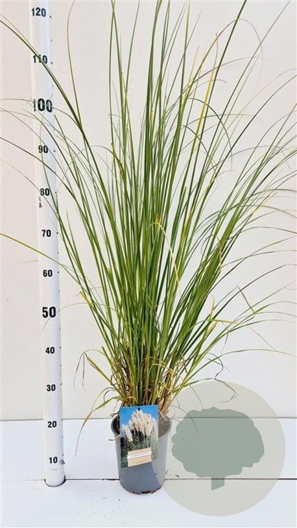 ToelichtingPampasgras (Cortaderia selloana) is een imposante grassoort met grote pluimen in de kleur wit. Het bloeit van augustus tot oktober en bereikt een hoogte van 200-250 cm. Plant op een zonnige plek in goed doorlatende, neutrale grond.