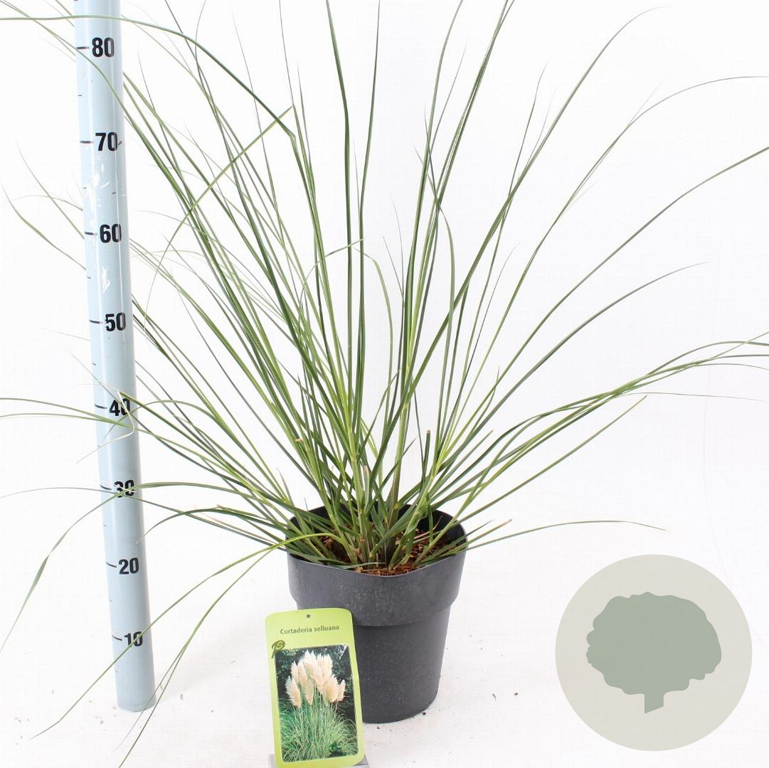 | Toelichting | Pampasgras (Cortaderia selloana) is een imposante grassoort met grote pluimen in de kleur wit. Het bloeit van augustus tot oktober en bereikt een hoogte van 200-250 cm. Plant op een zonnige plek in goed doorlatende, neutrale grond. |