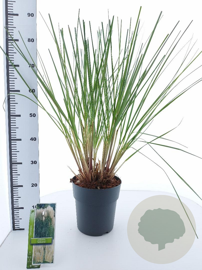 | Toelichting | Pampasgras (Cortaderia selloana) is een imposante grassoort met grote pluimen in de kleur wit. Het bloeit van augustus tot oktober en bereikt een hoogte van 200-250 cm. Plant op een zonnige plek in goed doorlatende, neutrale grond. |