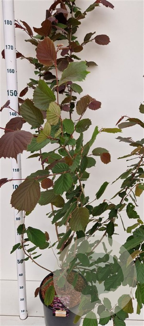| Toelichting | De Rode hazelaar (Corylus m. 'Purpurea') is een prachtige struik met rood blad en gele bloemen in februari - maart. Deze struik wordt ongeveer 300 cm hoog en gedijt goed in zon en halfschaduw op lichte klei, neutrale of voedselrijke grond. |