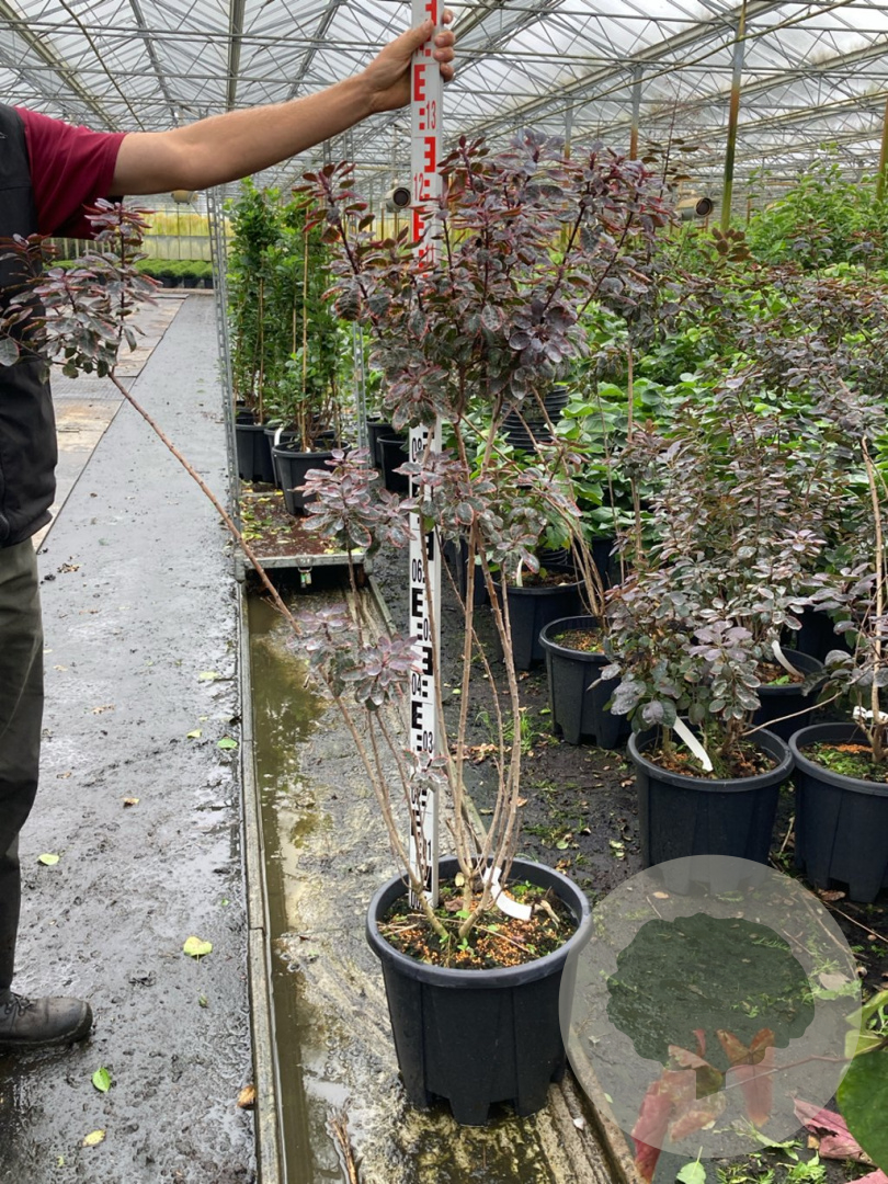 | Toelichting | De pruikenboom (Cotinus cog. 'Royal Purple') is een prachtige sierheester met paars blad en gele bloemen in de zomer. Deze heester wordt ongeveer 300 cm hoog en gedijt goed in zon en halfschaduw op neutrale, goede tuingrond met humus. |