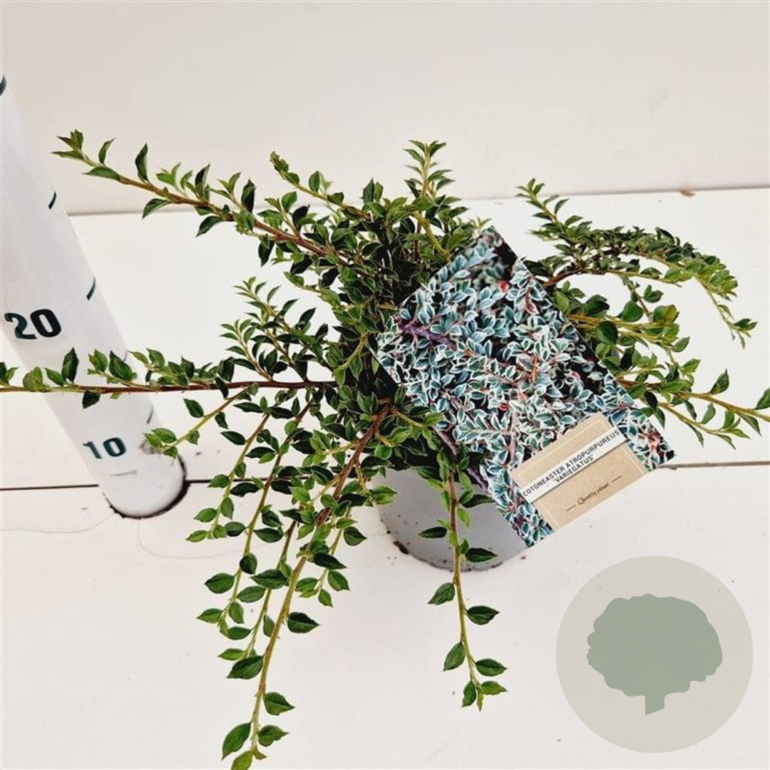 | Toelichting | De Gestreepte dwergmispel (Cotoneaster atrop. 'Variegatus') is een compacte struik met groenblijvend blad met crèmekleurige strepen. In mei en juni bloeit deze plant met witte bloemen. Geschikt voor zon en halfschaduw op zand- of neutrale grond. |