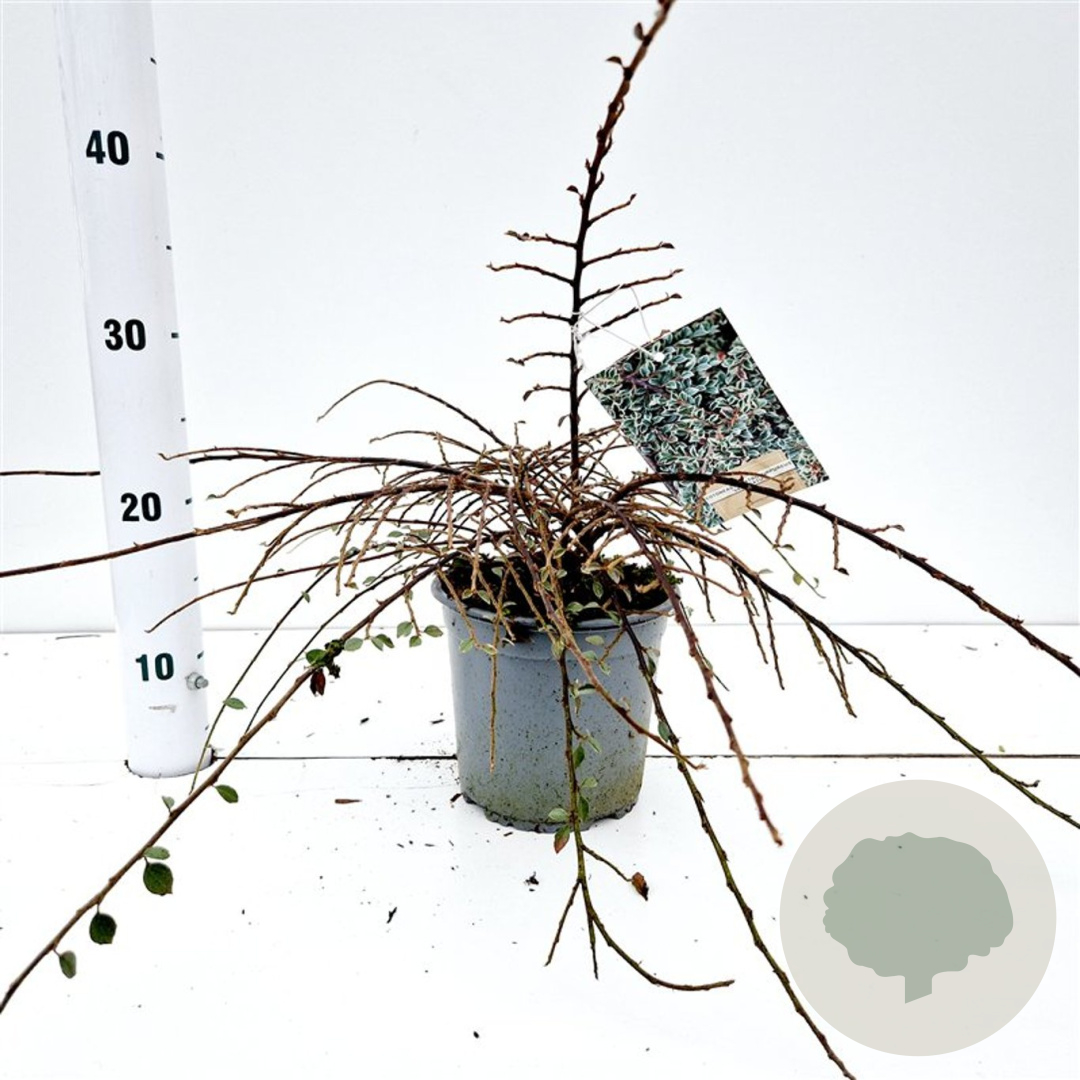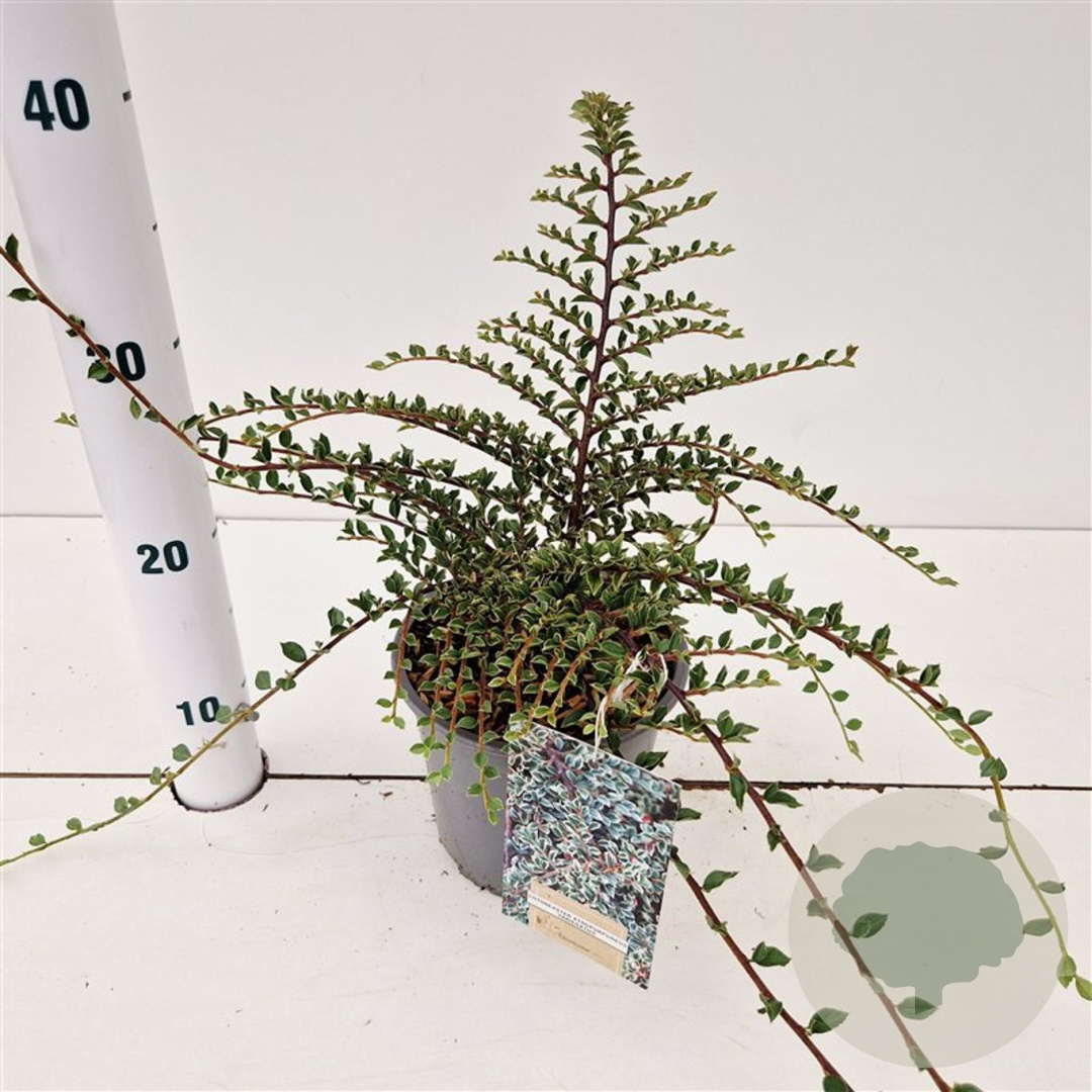 | Toelichting | De Gestreepte dwergmispel (Cotoneaster atrop. 'Variegatus') is een compacte struik met groenblijvend blad met crèmekleurige strepen. In mei en juni bloeit deze plant met witte bloemen. Geschikt voor zon en halfschaduw op zand- of neutrale grond. |
