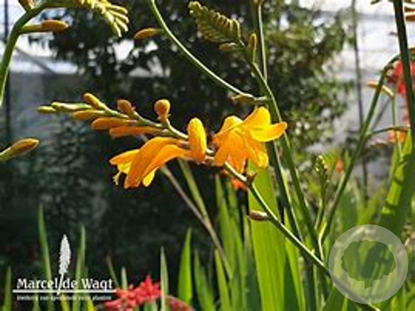 | Toelichting | Montbretia 'Geel Emberglow' is een prachtige plant met opvallende gele bloemen en groen blad. Deze plant bloeit in de zomermaanden juli en augustus en gedijt goed in zonnige tot halfschaduwrijke standplaatsen met neutrale, goede tuingrond. |