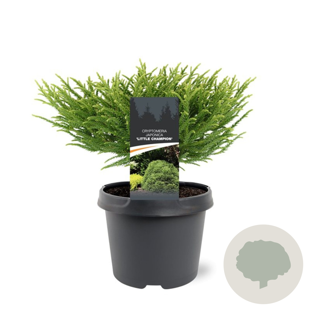 | Toelichting | De Japanse ceder 'Little Champion' is een compacte conifeer met groen loof. Deze plant wordt ongeveer 150 cm hoog en gedijt goed in zonnige tot halfschaduwrijke standplaatsen op zandgrond, lichte klei of neutrale grond. |