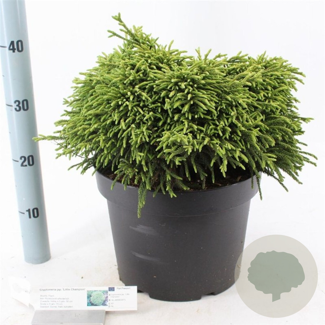 | Toelichting | De Japanse ceder 'Little Champion' is een compacte conifeer met groen loof. Deze plant wordt ongeveer 150 cm hoog en gedijt goed in zonnige tot halfschaduwrijke standplaatsen op zandgrond, lichte klei of neutrale grond. |