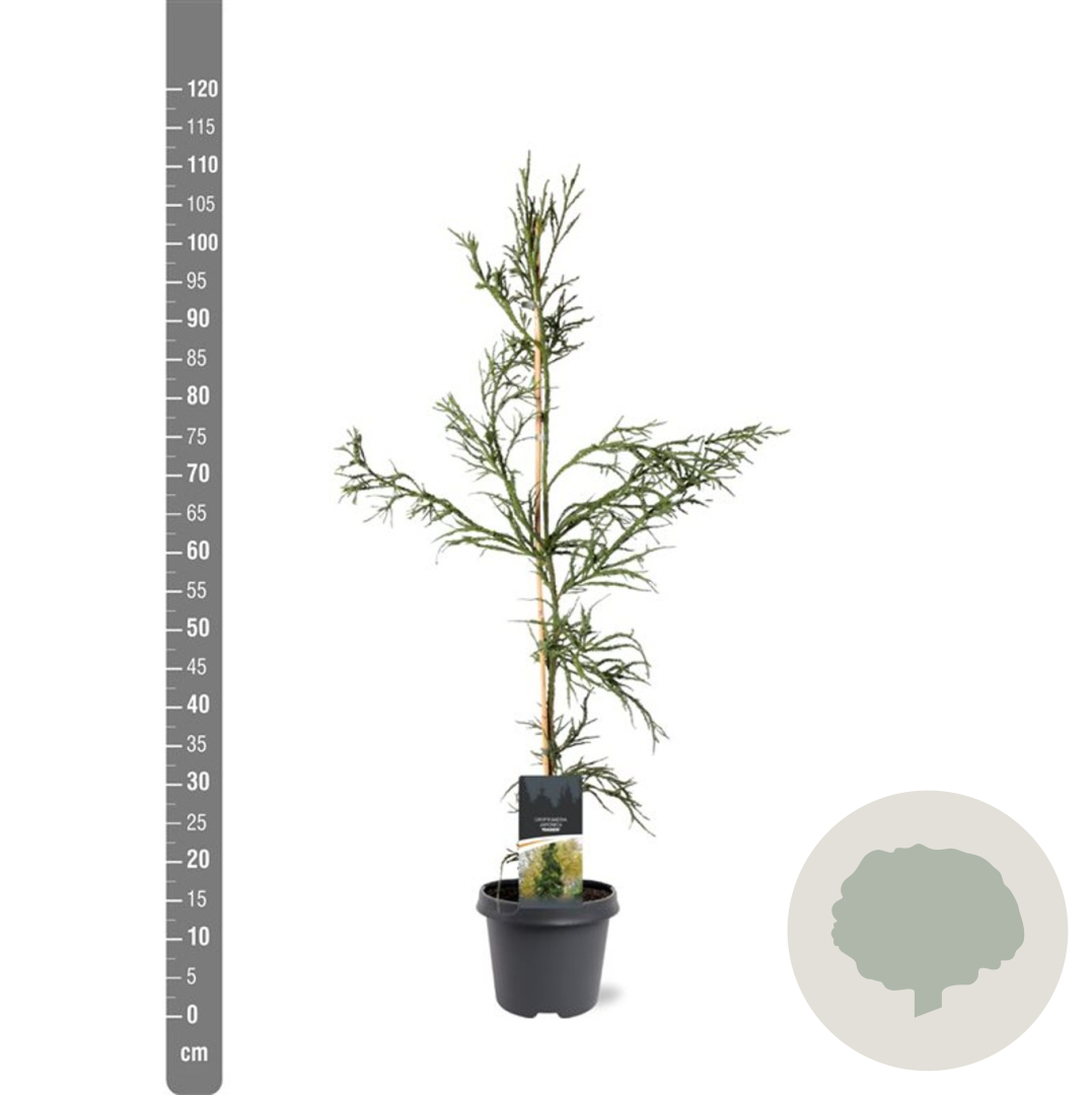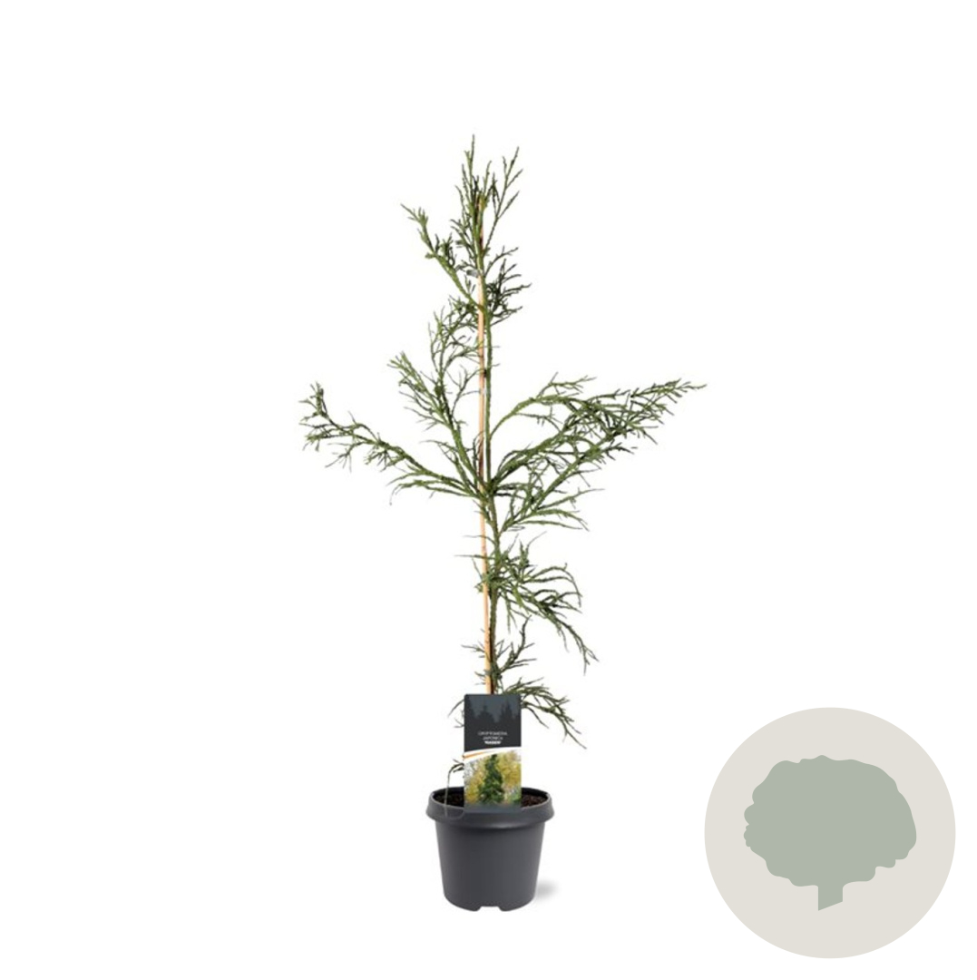 | Toelichting | De Japanse ceder 'Rasen' is een prachtige conifeer met groen blad en een compacte groei. Deze boom kan een hoogte bereiken van 300 cm en bloeit in de late zomer tot herfst. Perfect voor zonnige tot halfschaduwrijke plekken in de tuin met goed doorlatende, neutrale grond. |