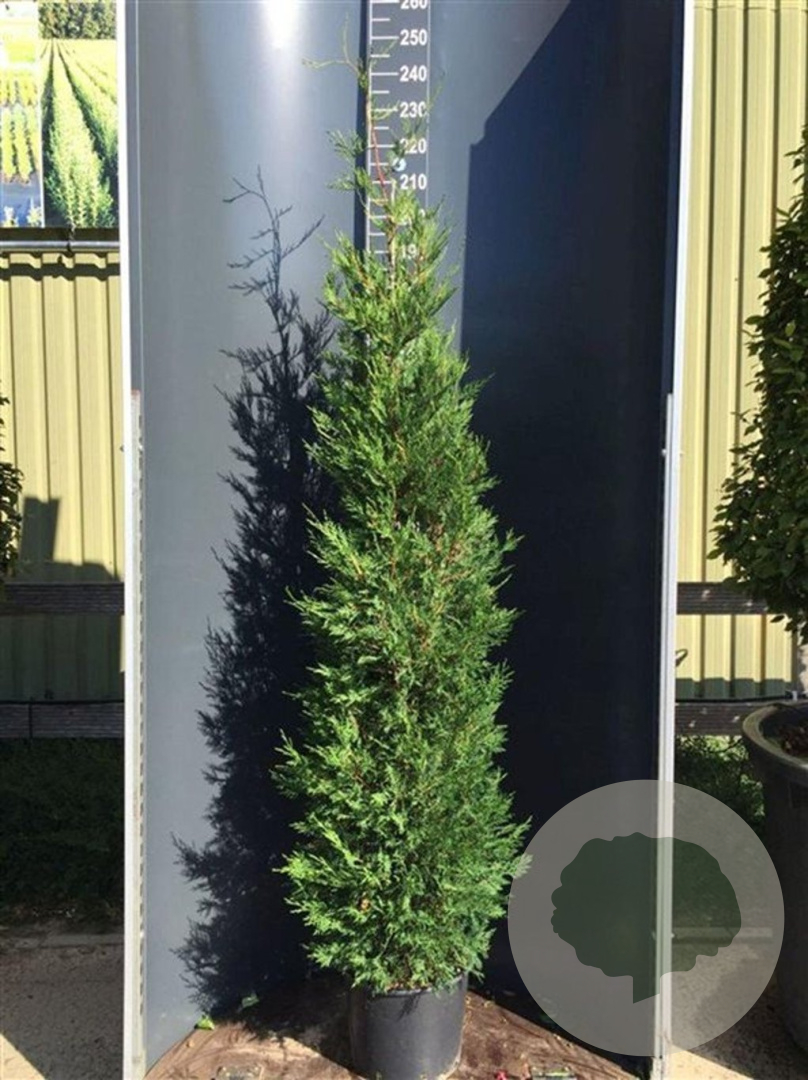 | Toelichting | De Cupressocyparis l. 'Tweeduizendéén' is een groenblijvende plant met een volwassen hoogte van 300 cm. Het blad is groen van kleur en gedijt goed in zonnige standplaatsen op zandgrond en neutrale grond. |