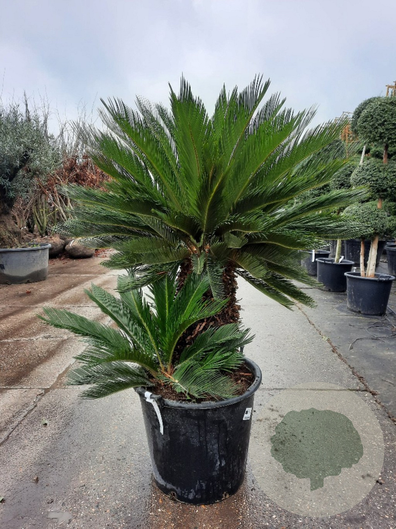 | Toelichting | De Japanse palmvaren, ook wel bekend als Cycas revoluta, is een prachtige exotische plant met groene bladeren en een hoogte van 200 cm. Deze plant gedijt goed in zowel de zon als halfschaduw en is ideaal voor zandgrond, klei, lichte klei, zure grond en kalkrijke grond. |