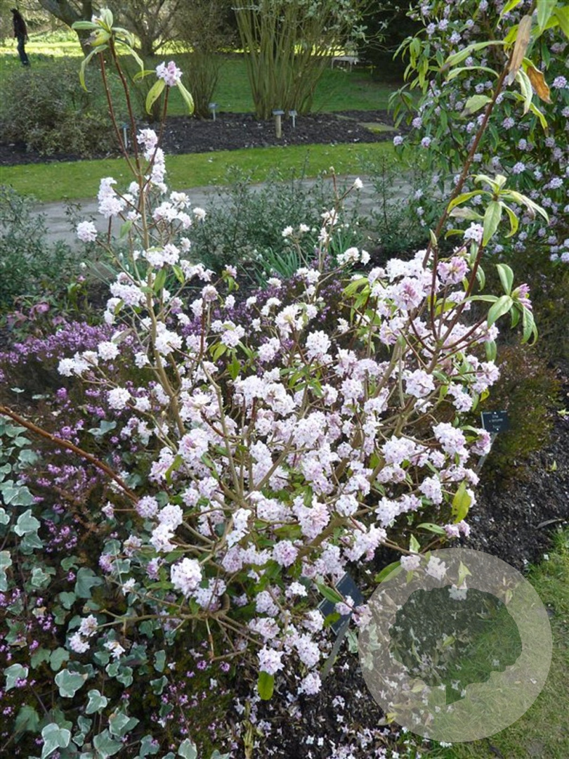 | Toelichting | Daphne, met zijn prachtige witte bloemen en donkergroene bladeren, bloeit van februari tot april. Deze struik gedijt het beste in halfschaduw op zure en humusrijke grond. |