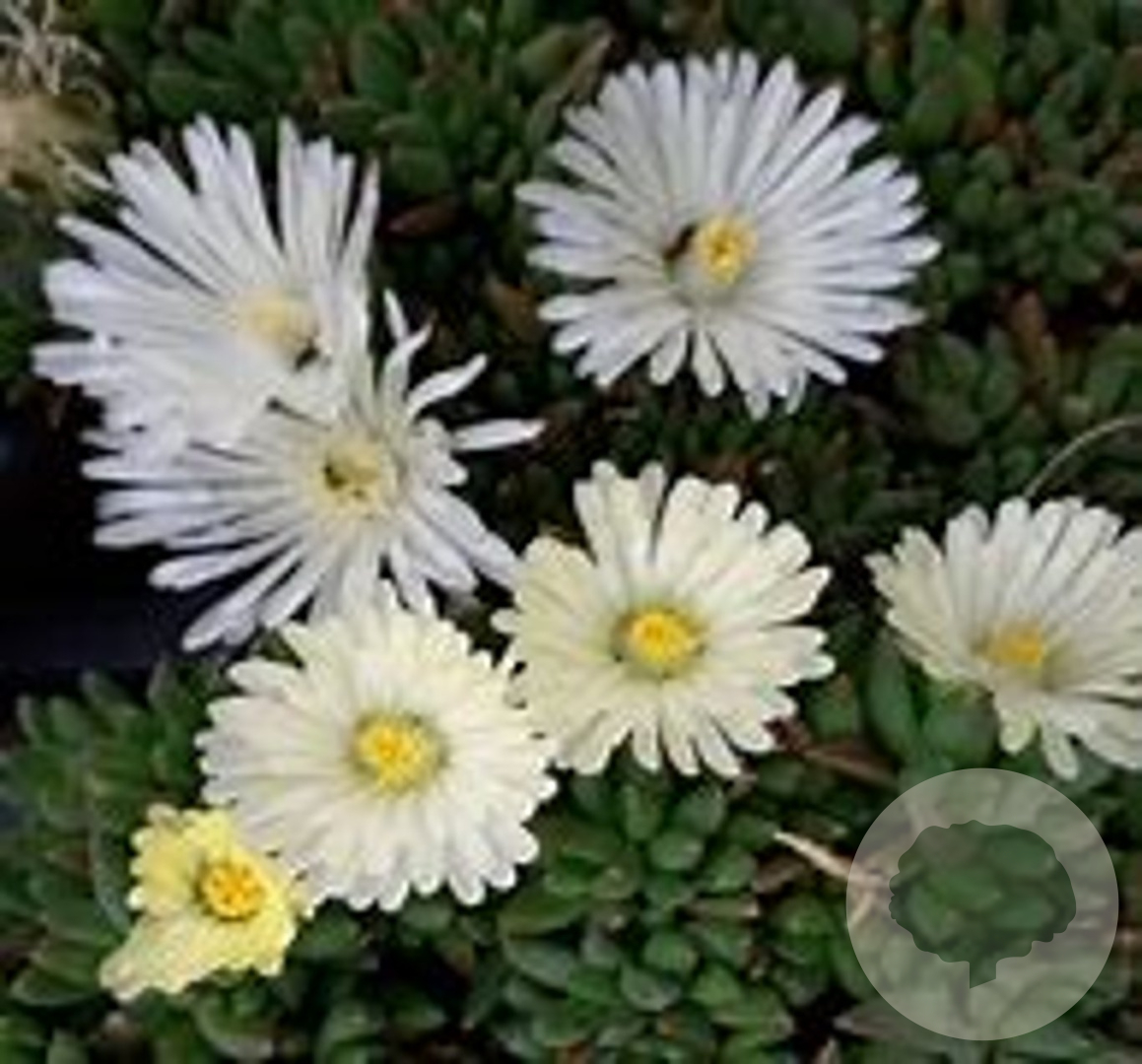 | Toelichting | Muurpeper (Delosperma congestum 'Album') is een laagblijvende plant met groene bladeren en witte bloemen. Deze vetplant bloeit van juni tot augustus en gedijt goed in zonnige tuinen met goed doorlatende, droge grond. |