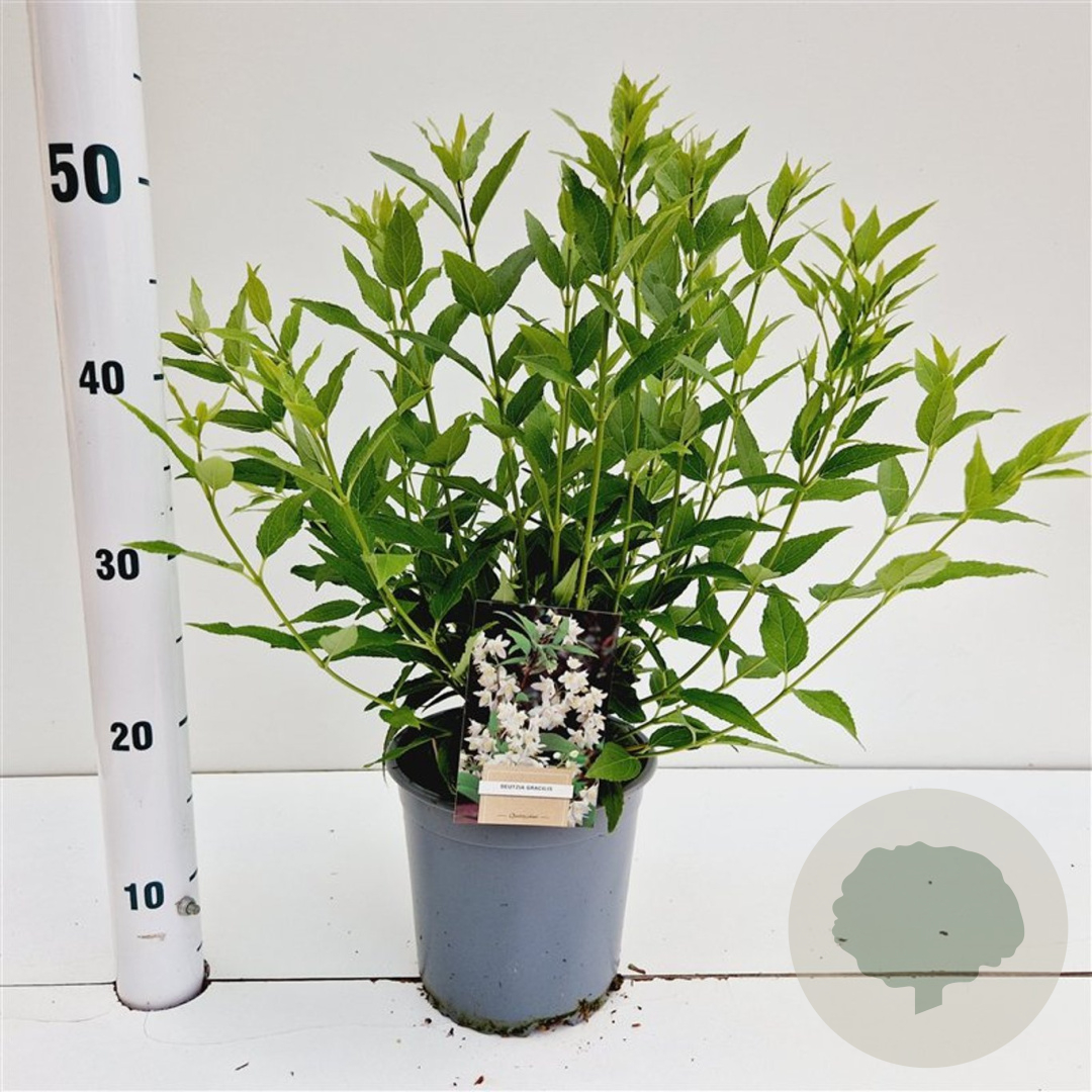 | Toelichting | De Bruidsbloem (Deutzia gracilis) is een prachtige struik met witte bloemen die bloeien in mei en juni. Deze struik wordt ongeveer 150 cm hoog en gedijt goed in zonnige tot halfschaduwrijke plekken met zandgrond, lichte klei of neutrale grond. |
