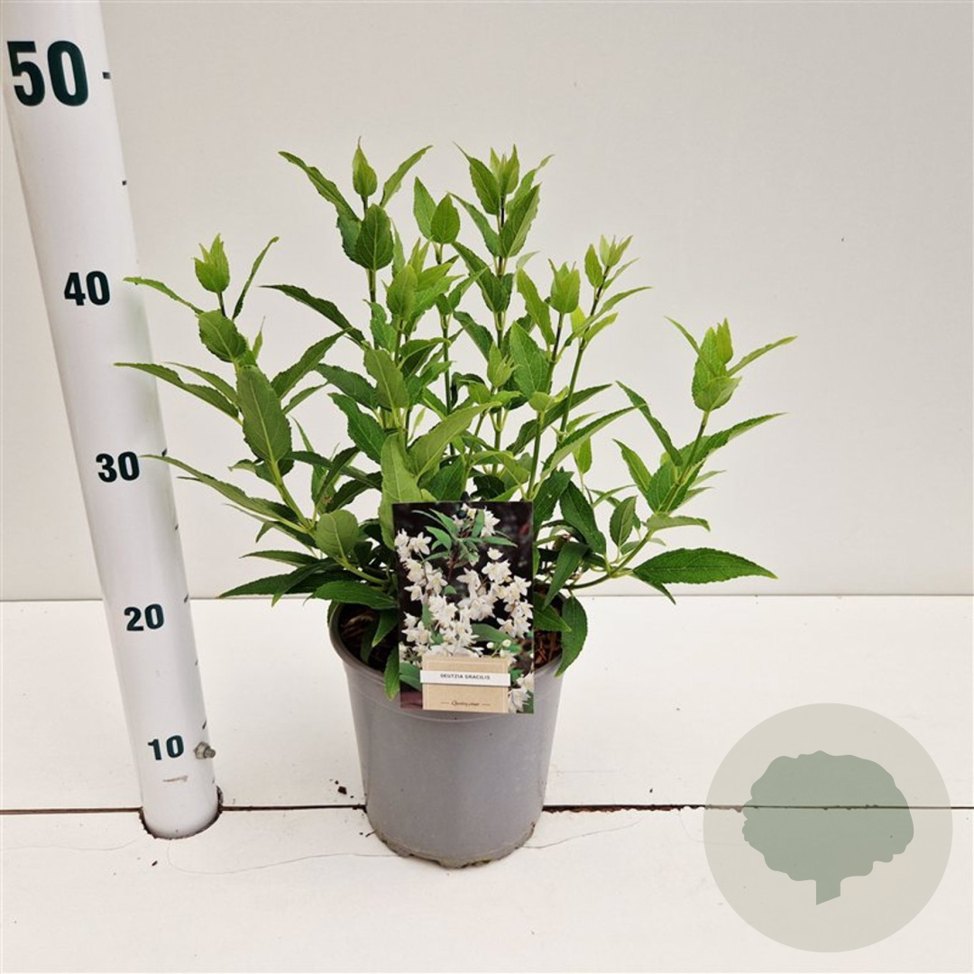 | Toelichting | De Bruidsbloem (Deutzia gracilis) is een prachtige struik met witte bloemen die bloeien in mei en juni. Deze struik wordt ongeveer 150 cm hoog en gedijt goed in zonnige tot halfschaduwrijke plekken met zandgrond, lichte klei of neutrale grond. |