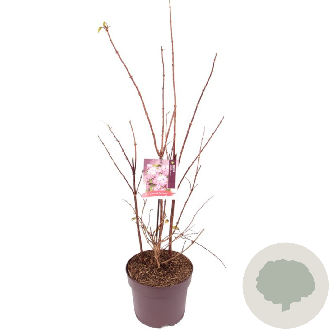 | Toelichting | De Bruidsbloem (Deutzia hybrida 'Strawberry Fields') is een prachtige heester met roze bloemen in mei en juni. Deze plant gedijt goed in zon en halfschaduw op neutrale, goede tuingrond met humus. Bereikt een hoogte van 150 cm. |