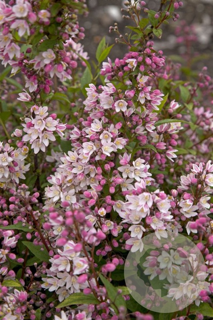 | Toelichting | De Bruidsbloem (Deutzia rosea 'Campanulata') is een prachtige heester met roze bloemen die bloeien in mei en juni. Deze plant gedijt goed in zon en halfschaduw op zandgrond, neutrale grond of goede tuingrond. Bereikt een hoogte van 150 cm. |