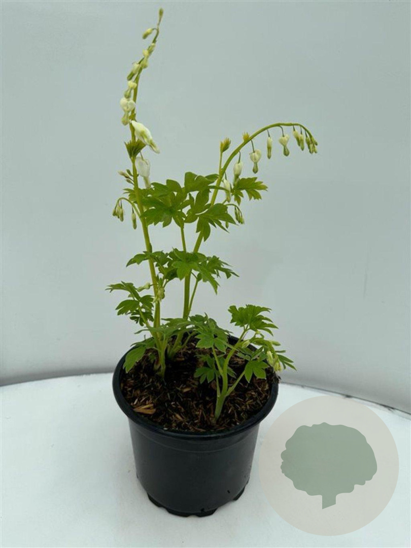 | Toelichting | Het Gebroken hartje (Dicentra spectabilis 'Alba') is een charmante vaste plant met hangende trosjes witte bloemen in de lente. Perfect voor een halfschaduwrijke plek in de tuin met lichte klei, neutrale of humusrijke grond. Bereikt een hoogte van 60 cm en bloeit van april tot juni. |