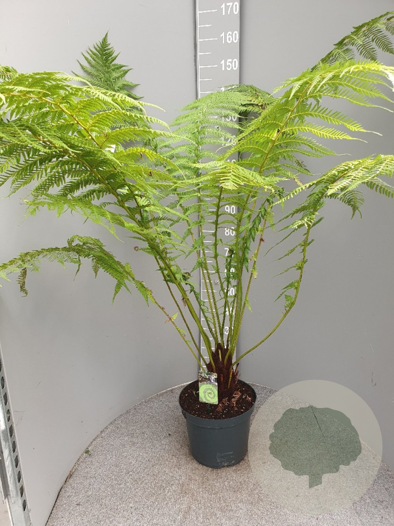 ToelichtingDe Dicksonia antarctica, ook wel bekend als de Boomvaren, is een prachtige varen met groene bladeren. Deze varen gedijt goed in de halfschaduw op zure en humusrijke grond. Met een volwassen hoogte van 300 cm voegt deze varen een tropisch tintje toe aan je tuin.