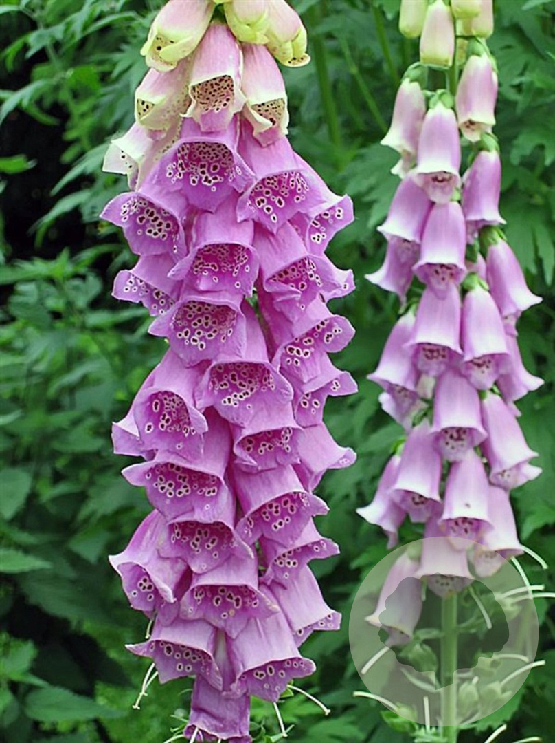 | Toelichting | Vingerhoedskruid (Digitalis purpurea) is een prachtige bloeiende plant met paarse, roze en witte bloemen. Deze plant bloeit van juni tot augustus en gedijt goed in de halfschaduw op zandgrond, lichte klei of neutrale grond. De volwassen hoogte is ongeveer 150 cm. |