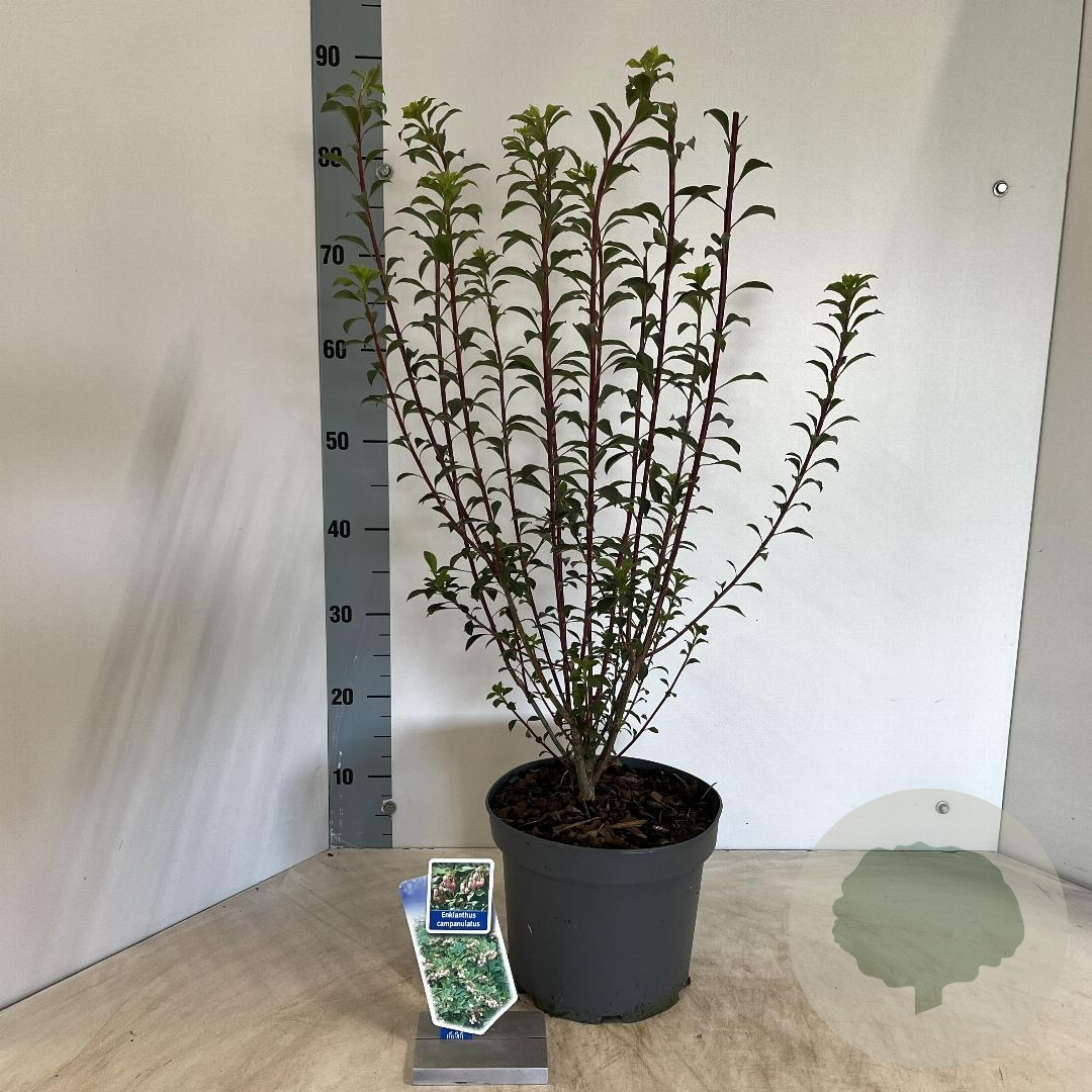 | Toelichting | De Enkianthus campanulatus, ook wel bekend als de Klokjesbloemstruik, is een prachtige struik met witte bloemen die rood verkleuren. Deze struik bloeit in mei en juni en gedijt goed in zure en humusrijke grond op een zonnige tot halfschaduwrijke standplaats. |