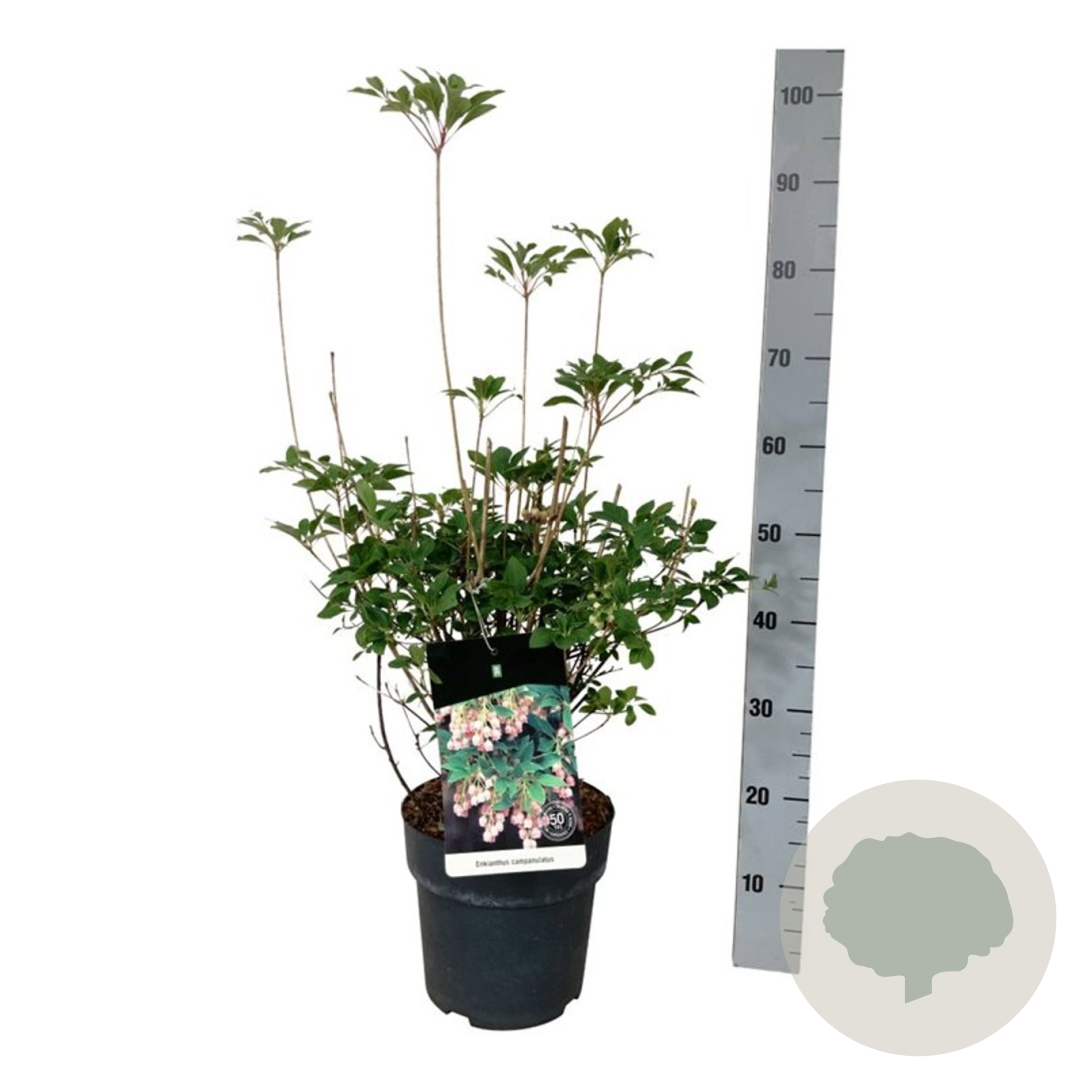 | Toelichting | De Enkianthus campanulatus, ook wel bekend als de Klokjesbloemstruik, is een prachtige struik met witte bloemen die rood verkleuren. Deze struik bloeit in mei en juni en gedijt goed in zure en humusrijke grond op een zonnige tot halfschaduwrijke standplaats. |