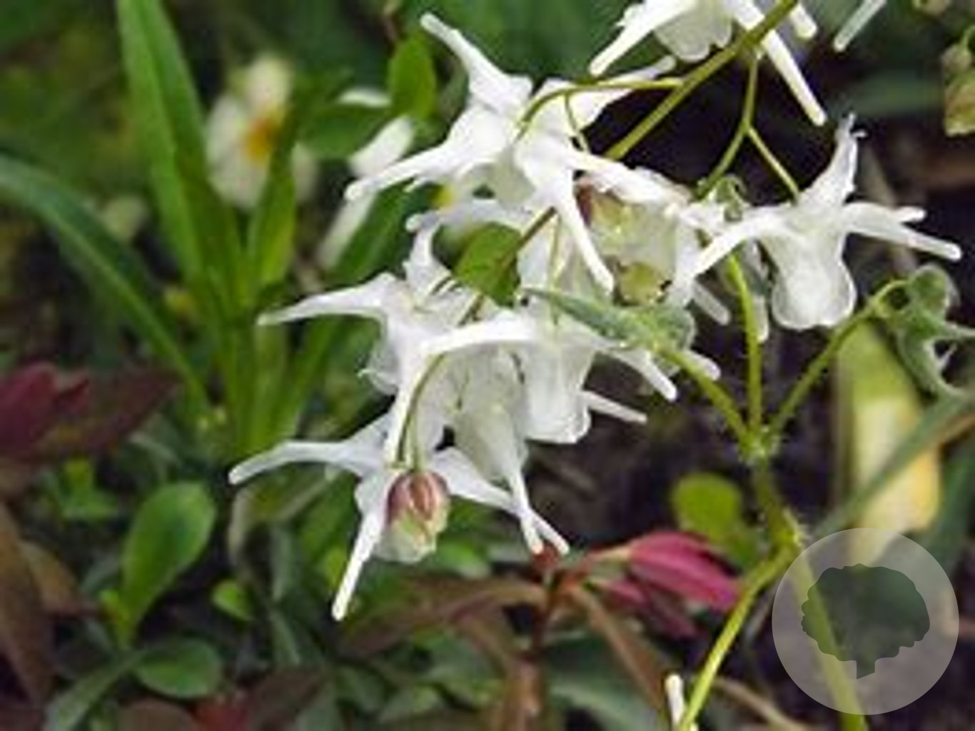 ToelichtingDe Elfenbloem (Epimedium 'Perrine's White') is een charmante bodembedekker met witte bloemen en groen blad. Deze plant bloeit in april en mei en gedijt goed in de halfschaduw op humusrijke of neutrale grond.