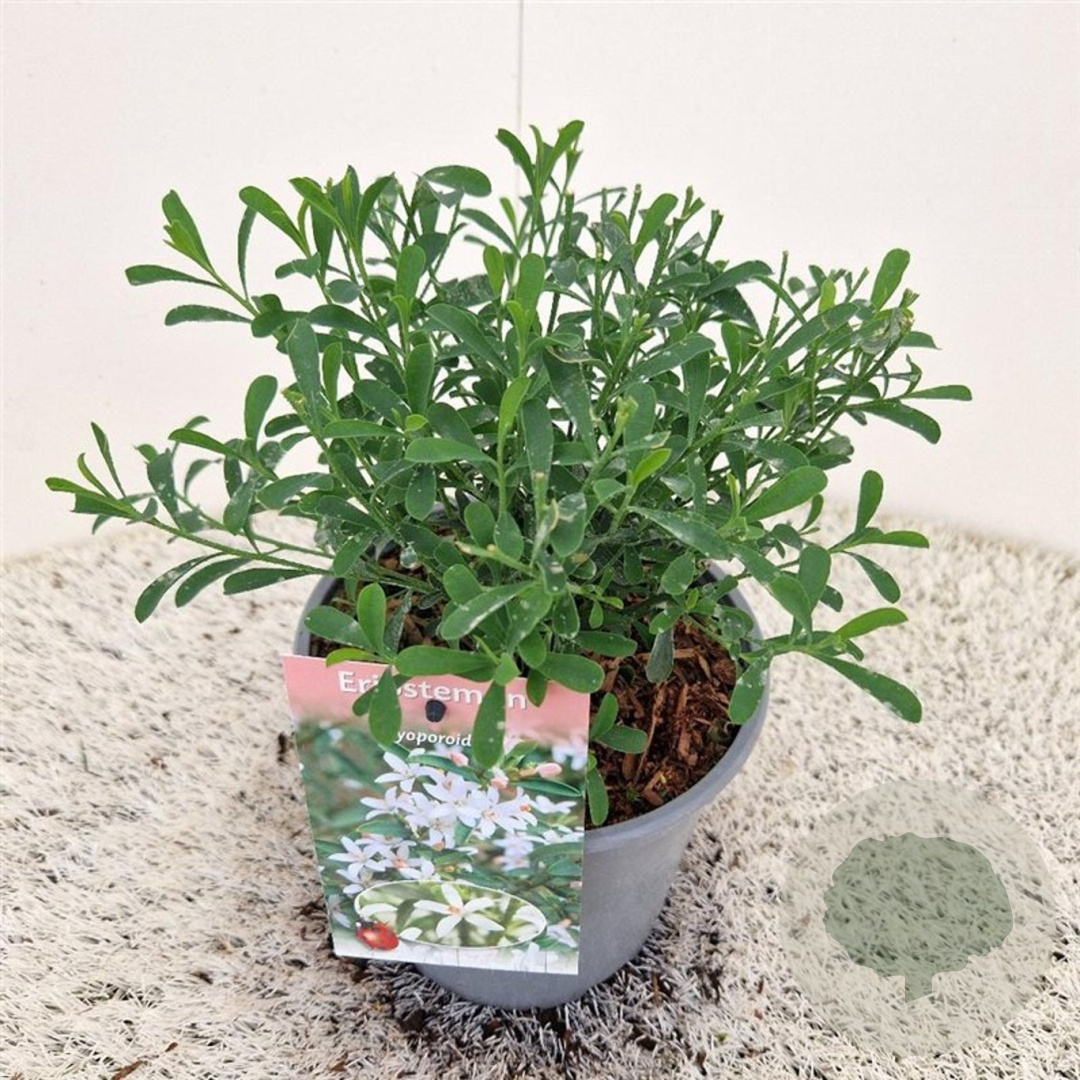 | Toelichting | Eriostemon, met prachtige witte en roze bloemen, bloeit van mei tot juli. Deze struik bereikt een hoogte van 100 cm en gedijt goed in zonnige tot halfschaduwrijke plekken met zandgrond, lichte klei of neutrale grond. |