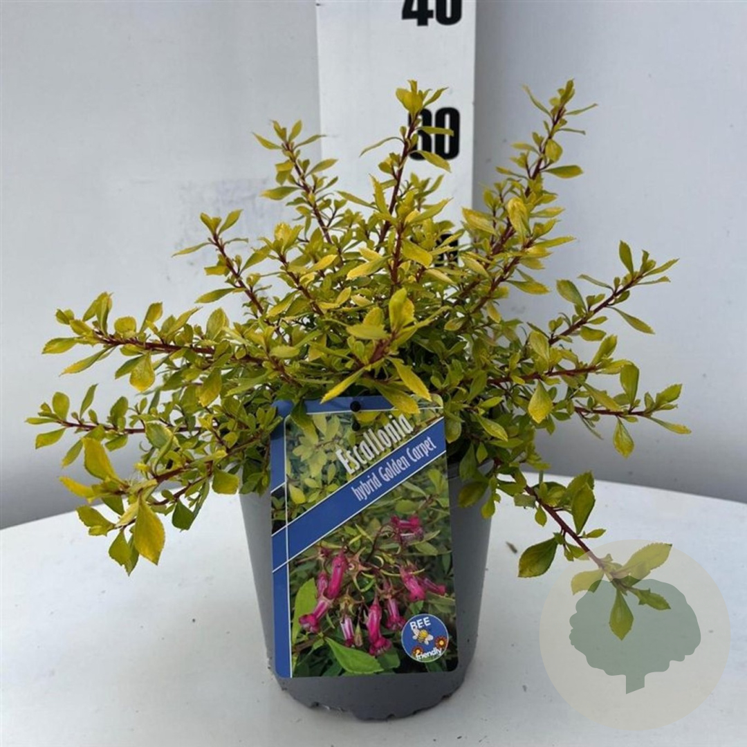 | Toelichting | Escallonia Golden Carpet is een compacte struik met roze bloemen en groen blad. Deze plant bloeit van juni tot augustus en gedijt goed in zon en halfschaduw op zand- of neutrale grond. Perfect voor een kleurrijke border! |
