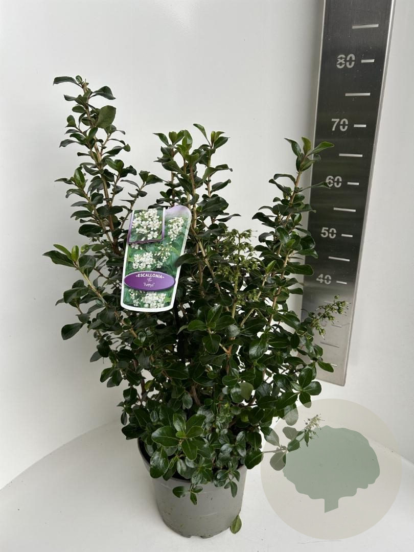 | Toelichting | Escallonia 'Iveyi' is een prachtige heester met donkergroen blad en witte bloemen. Deze plant bloeit van juni tot september en gedijt goed in zon en halfschaduw op zandgrond, lichte klei of neutrale grond. |