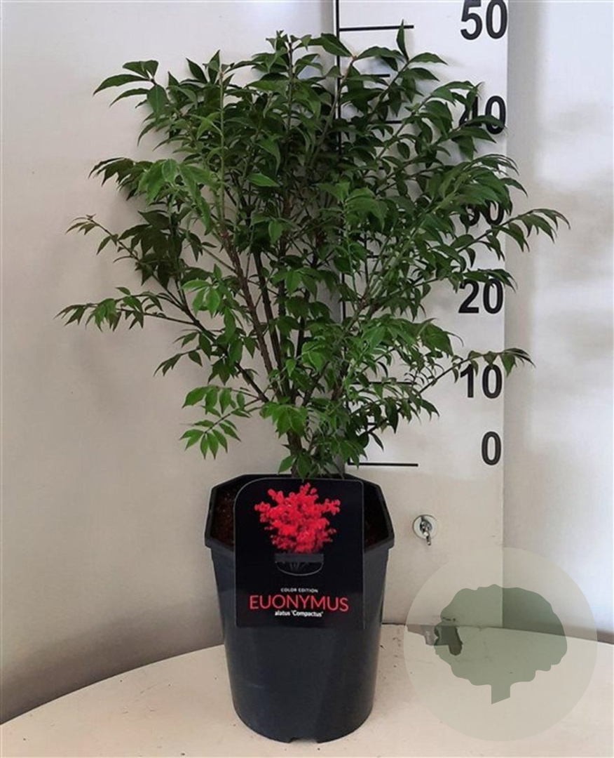 | Toelichting | De Euonymus alatus 'Compactus', ook wel Kardinaalsmuts genoemd, is een compacte struik met groene bloemen en bladeren. Bloeiend in mei - juni, bereikt een hoogte van 150 cm. Geschikt voor zonnige tot halfschaduwrijke standplaatsen in lichte klei en neutrale grond. |