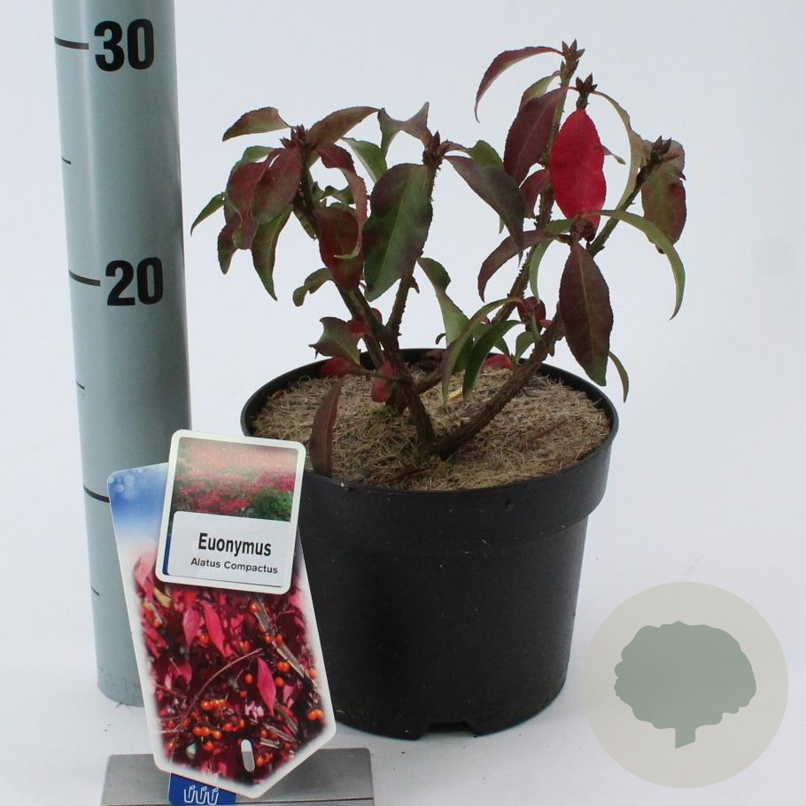 | Toelichting | De Euonymus alatus 'Compactus', ook wel Kardinaalsmuts genoemd, is een compacte struik met groene bloemen en bladeren. Bloeiend in mei - juni, bereikt een hoogte van 150 cm. Geschikt voor zonnige tot halfschaduwrijke standplaatsen in lichte klei en neutrale grond. |