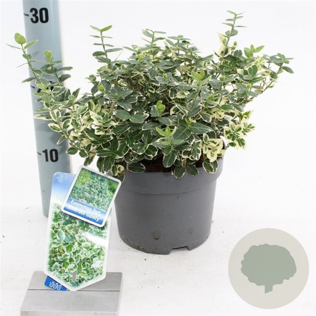| Toelichting | De Euonymus fort. 'Emerald Gaiety', ook bekend als Kardinaalsmuts, is een prachtige heester met groen-wit bont blad. In mei-juni bloeit deze plant met onopvallende groene bloemen. Ideaal voor zon en halfschaduw in neutrale, goed doorlatende grond. |