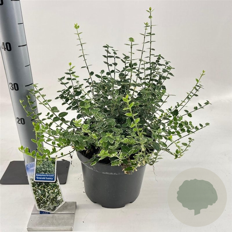 | Toelichting | De Euonymus fort. 'Emerald Gaiety', ook bekend als Kardinaalsmuts, is een prachtige heester met groen-wit bont blad. In mei-juni bloeit deze plant met onopvallende groene bloemen. Ideaal voor zon en halfschaduw in neutrale, goed doorlatende grond. |