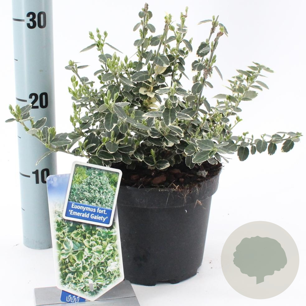 | Toelichting | De Euonymus fort. 'Emerald Gaiety', ook bekend als Kardinaalsmuts, is een prachtige heester met groen-wit bont blad. In mei-juni bloeit deze plant met onopvallende groene bloemen. Ideaal voor zon en halfschaduw in neutrale, goed doorlatende grond. |