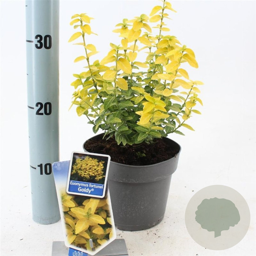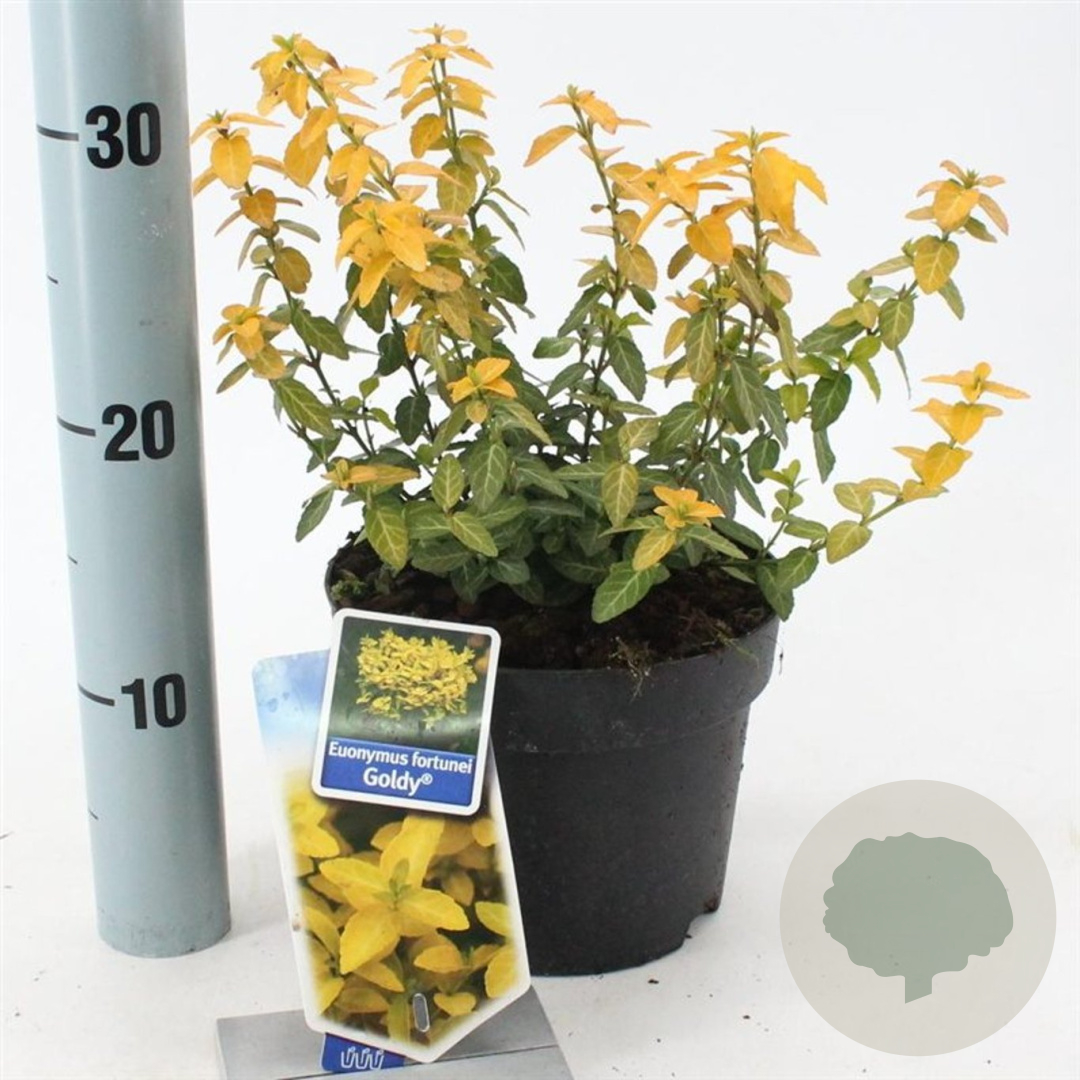 | Toelichting | De Euonymus fort. Goldy, ook wel bekend als Kardinaalsmuts, is een prachtige struik met opvallend geel blad. In mei en juni bloeit deze plant met groene bloemen. Ideaal voor zonnige tot halfschaduwrijke plekken in de tuin met goed doorlatende, neutrale grond. |