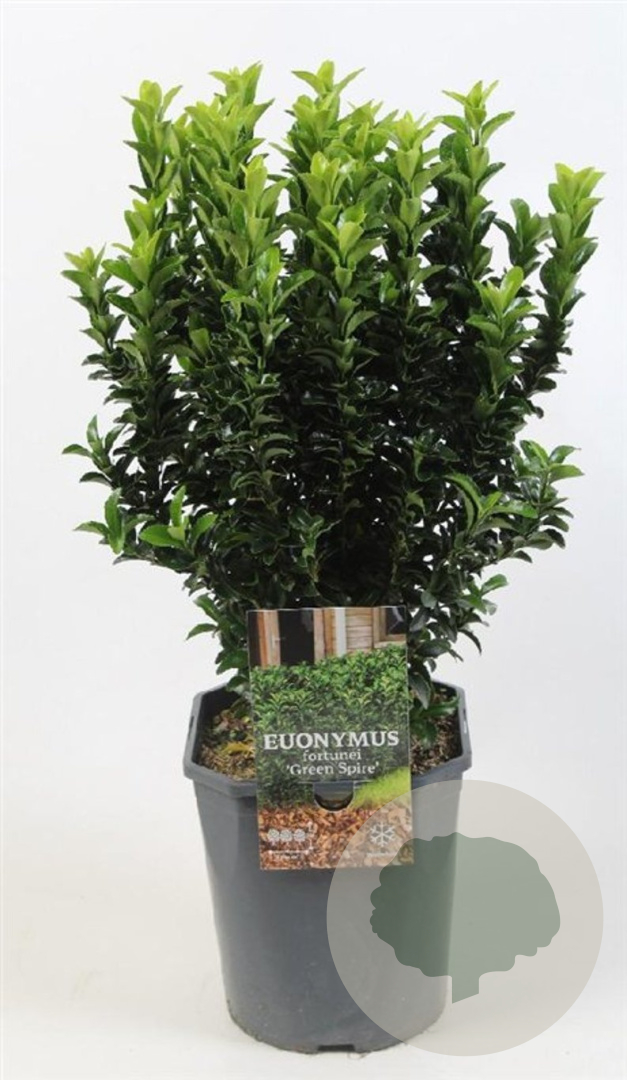 | Toelichting | De Euonymus japonicus 'Green Spire', ook wel Kardinaalsmuts genoemd, is een sierlijke heester met groene bloemen en bladeren. Deze plant bloeit in mei en juni en gedijt goed in zon en halfschaduw op neutrale, goede tuingrond met humus. |
