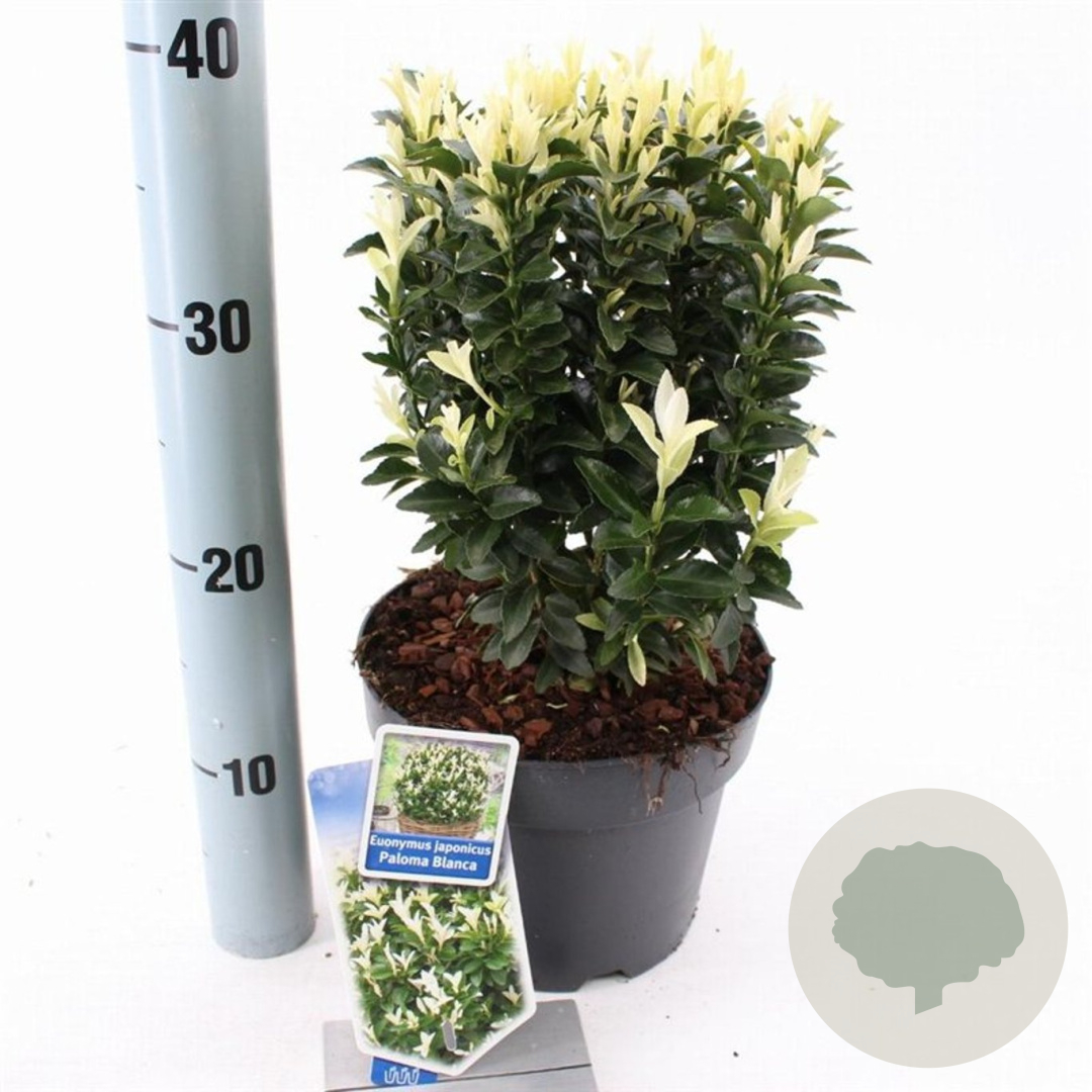 | Toelichting | De Euonymus jap. Paloma Blanca, ook wel bekend als Kardinaalsmuts, is een prachtige struik met groene bloemen en bladeren. Deze struik bloeit in mei en juni en gedijt goed in zonnige tot halfschaduwrijke omgevingen met zandgrond, neutrale grond en goede tuingrond. |