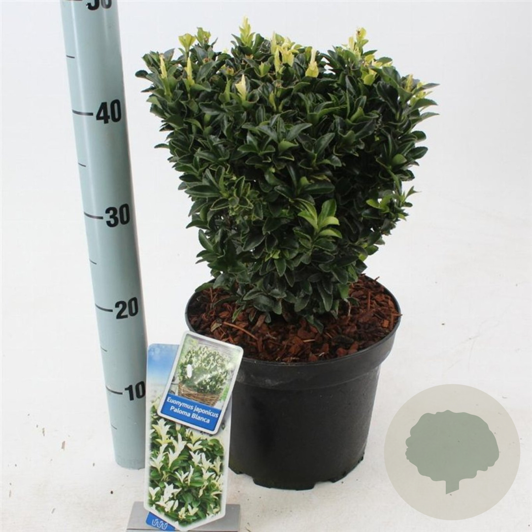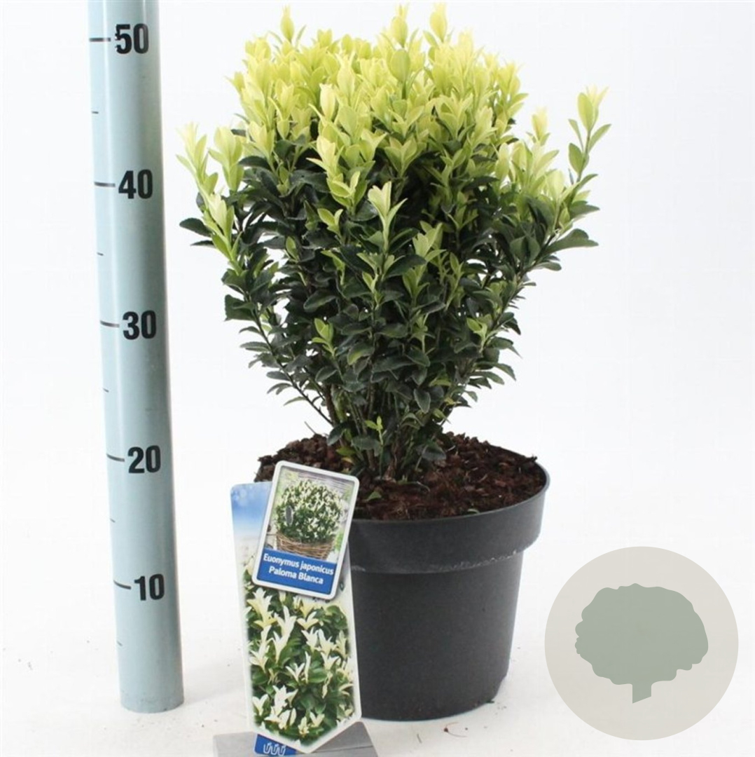 | Toelichting | De Euonymus jap. Paloma Blanca, ook wel bekend als Kardinaalsmuts, is een prachtige struik met groene bloemen en bladeren. Deze struik bloeit in mei en juni en gedijt goed in zonnige tot halfschaduwrijke omgevingen met zandgrond, neutrale grond en goede tuingrond. |