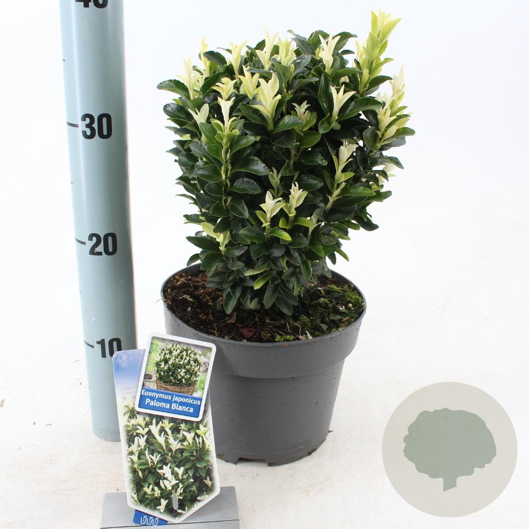 | Toelichting | De Euonymus jap. Paloma Blanca, ook wel bekend als Kardinaalsmuts, is een prachtige struik met groene bloemen en bladeren. Deze struik bloeit in mei en juni en gedijt goed in zonnige tot halfschaduwrijke omgevingen met zandgrond, neutrale grond en goede tuingrond. |