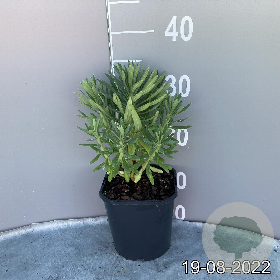 | Toelichting | De Wolfsmelk (Euphorbia characias wulfenii) is een prachtige vaste plant met groen blad en opvallende gele bloemen. Deze plant bloeit van april tot juni en gedijt goed in zon en halfschaduw op diverse grondsoorten. Bereikt een hoogte van ongeveer 100 cm. |
