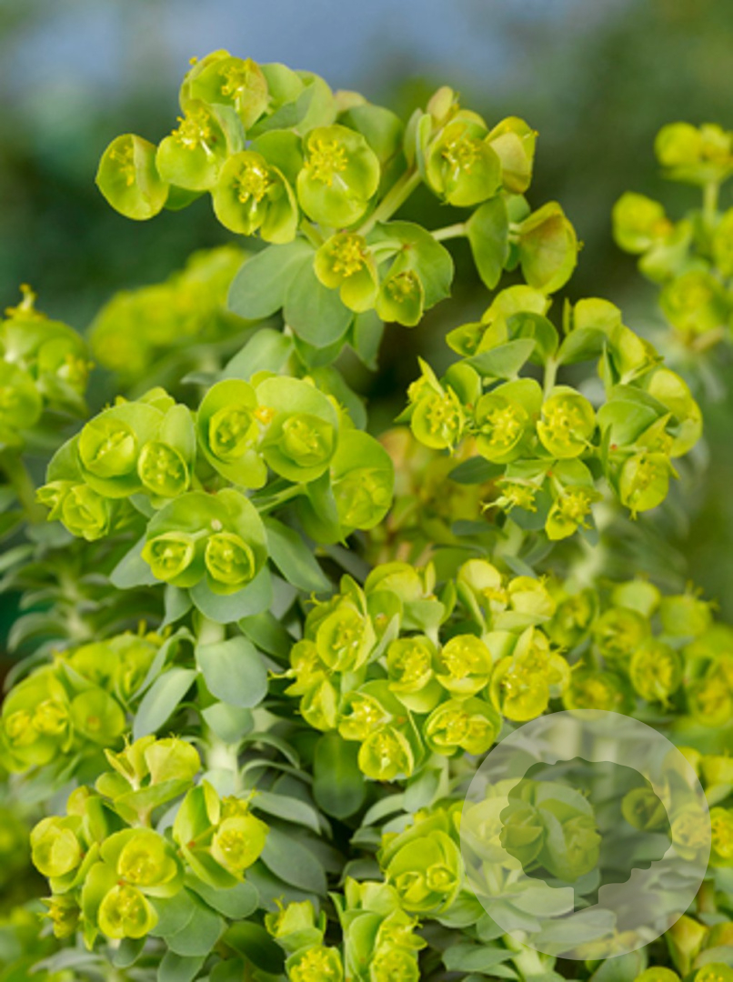 | Toelichting | De Wolfsmelk is een laagblijvende plant met opvallend blauwgroen blad en gele bloemen in de lente. Perfect voor zonnige borders op zandgrond, klei of neutrale grond. Bloeit prachtig in mei en juni. |
