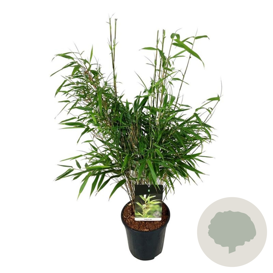 | Toelichting | De Rode bamboe (Fargesia rufa) is een prachtige bamboesoort met groene bladeren en een volwassen hoogte van 200 cm. Deze bamboe gedijt goed in zonnige tot halfschaduwrijke standplaatsen op neutrale, voedselrijke zandgrond. Perfect voor een groene, exotische uitstraling in de tuin. |